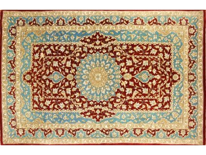 [rozměr: 150 x 225 cm] Kvalitní perský koberec Qom z hedvábí