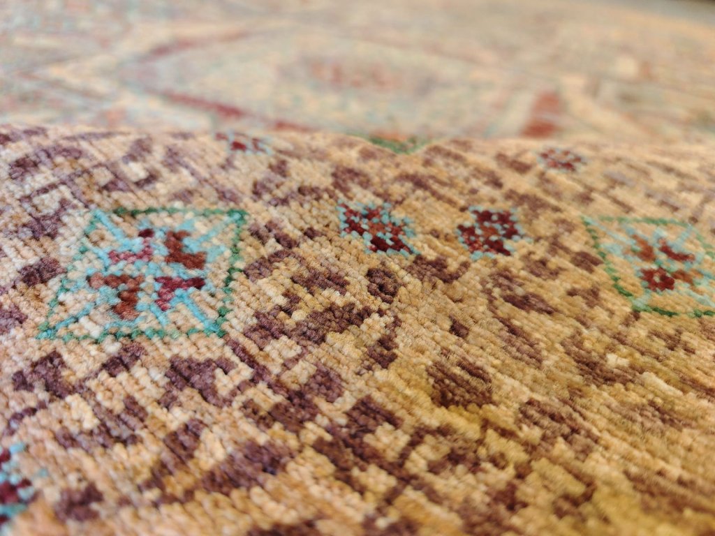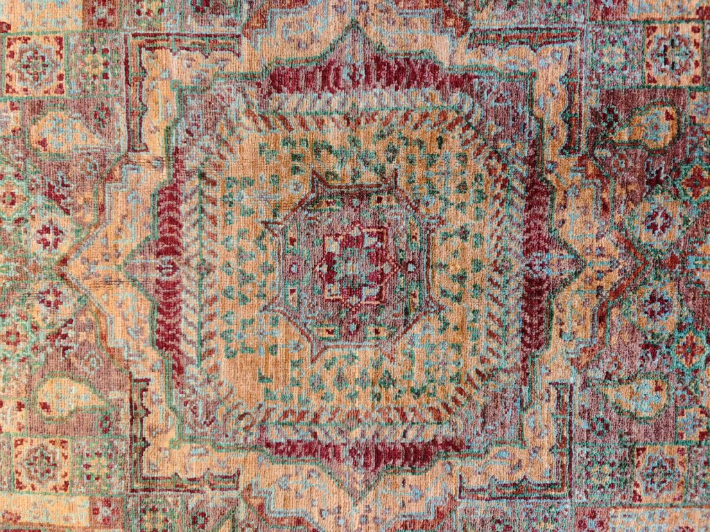 Koberec Chubi Mamluk je vytvořen z ručně spřádané vlny, což zajišťuje jeho výjimečnou měkkost, odolnost a luxusní vzhled.