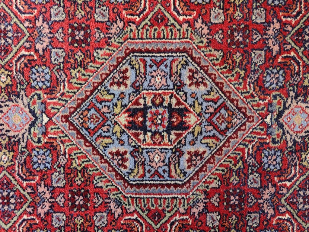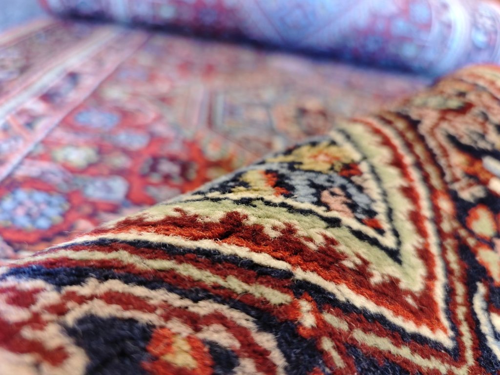 Odolnost, která překvapí: Tkalci z oblasti Hamadanu používají tzv. symetrický uzel a specifickou techniku vázání s jednou útkovou nití. Výsledkem je koberec, který je pevný, stabilní a neuvěřitelně odolný proti sešlapání. Je to ideální parťák do chodeb nebo jídelen.