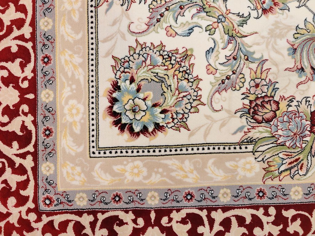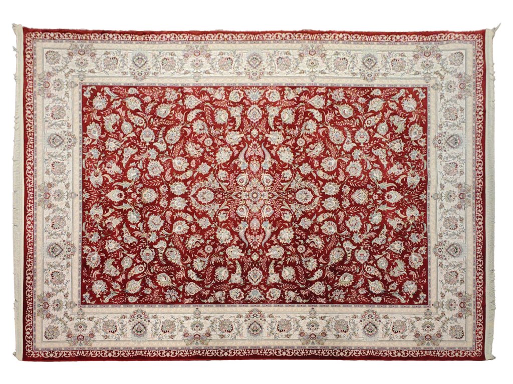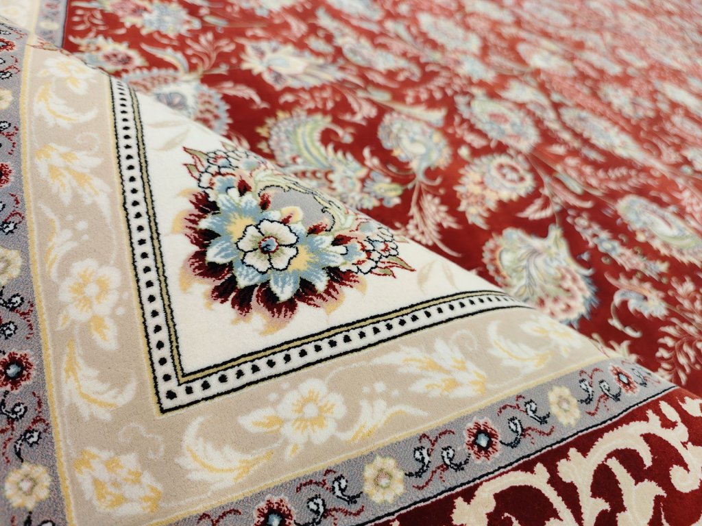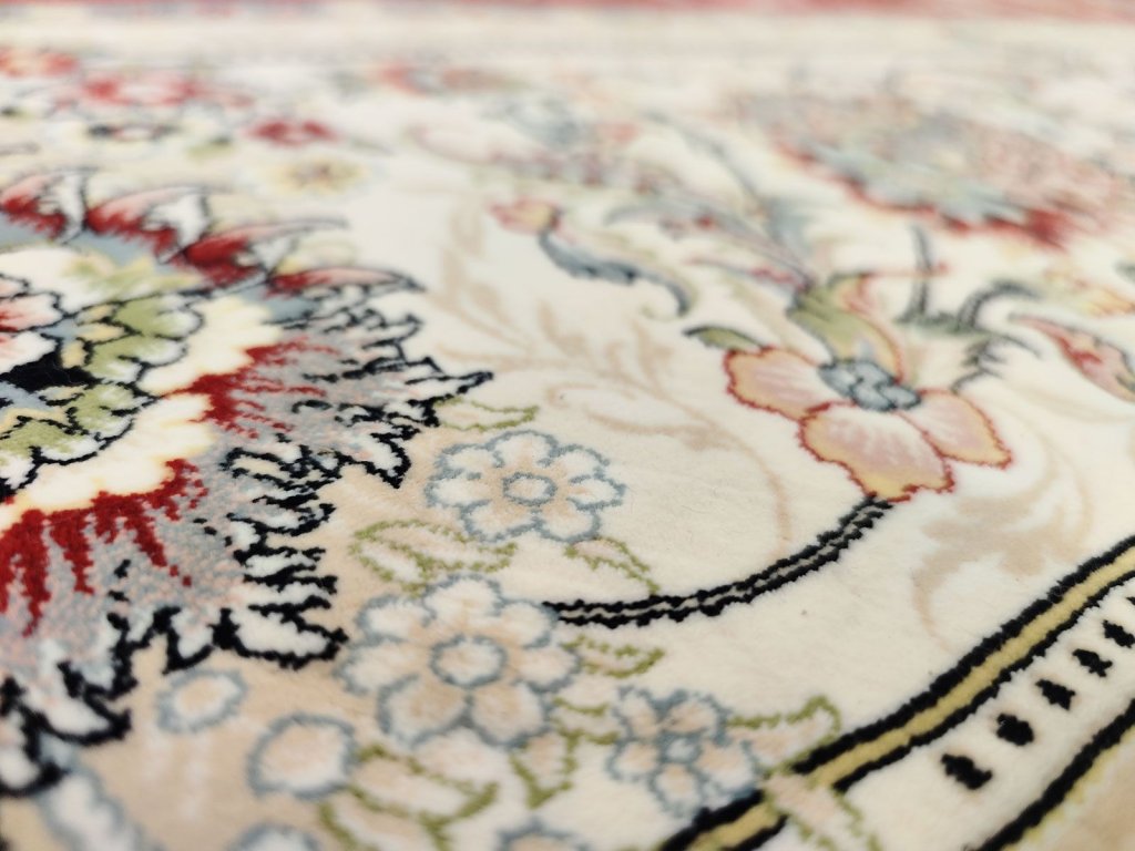 - Tradiční perské vzory: Medailony, vinobraní, květinové motivy a geometrické vzory v harmonické kombinaci barev.