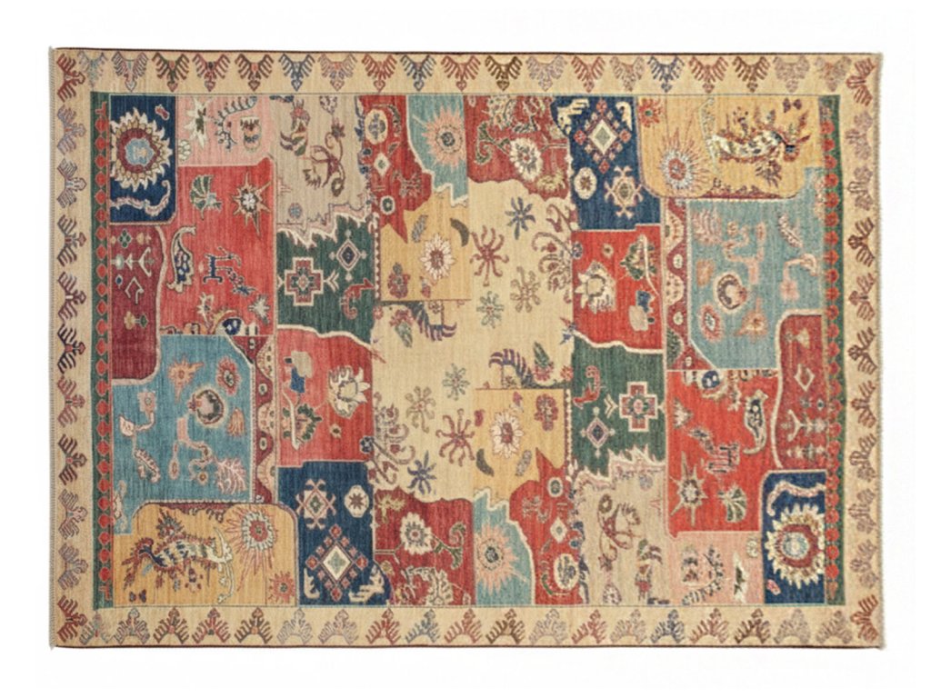 Design koberce Kazak Patchwork 7039 reflektuje bohaté kulturní dědictví, s komplexními vzory a motivy, které oživují každý prostor svou krásou a elegancí.Užití