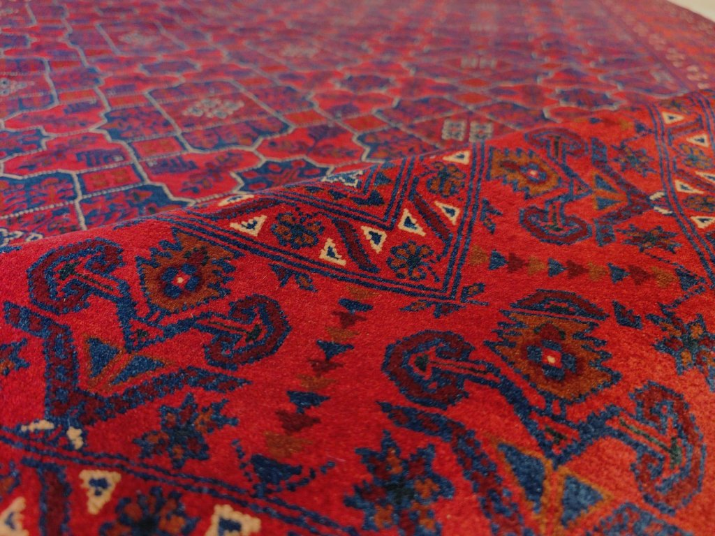 Koberec Turkmen pochází z Afghánistánu, kde je výroba koberců hluboce zakořeněna v místní kultuře a historii, což dodává každému koberci jedinečný charakter.