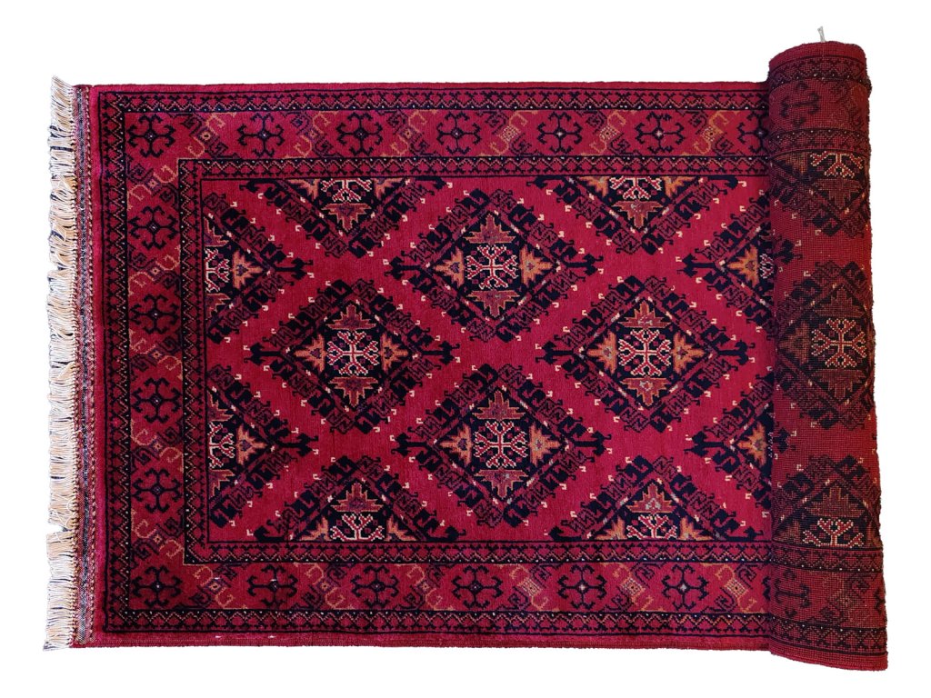 Koberec Turkmen pochází z Afghánistánu, kde je výroba koberců hluboce zakořeněna v místní kultuře a historii, což dodává každému koberci jedinečný charakter.
